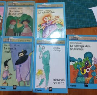 La moneda de cinco marcos. Los ratones del desierto. El pampinoplas. Shola y los leones. La tienda mágica. El secreto de la arboleda. La reina calva. Christine Nöstlinger. La hormiga Miga de desmiga. Ideal para niños de 7 a 9 años. Se venden juntos o por separado. Juntos a 18 euros. Por separado a 2,5 euros cada uno, excepto La tienda mágica y El pampinoplas, que son a 1 euro cada uno porque están más desgastados. Hago envíos. Más libros en mi perfil.