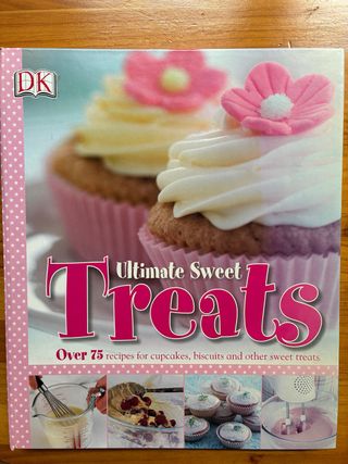 Libro de recetas infantil en inglés "Ultimate Sweet Treats" (DK). Más de 75 recetas de cupcakes, galletas, muffins y otros dulces, con explicaciones claras e imágenes paso a paso. Ideal para que las/os niñas/os aprendan inglés mientras cocinan y se diviertan.