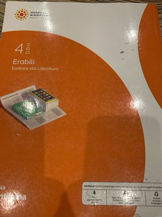 libro 4 eso en euskera, sin apuntes en el interior, la tapa un poco tocada por el uso,