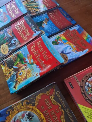 1 libro suelto = 5€ Colección completa = 30€ 8 libros infantiles de Geronimo Stilton. Serie completa de 6 libros con olores "Regreso al Reino de la Fantasía" y otros dos más (Viaje en el Tiempo y La Gran Invasión de Ratonia)