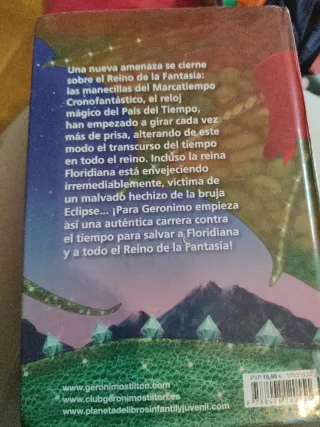 Una nueva amenaza se cierne sobre el Reino de la Fantasía: las manecillas del Marcatiempo Cronofantástico, el reloj mágico del País del Tiempo, han empezado a girar cada vez más deprisa, alterando de este modo el transcurso del tiempo en todo el reino. Incluso la reina Floridiana está envejeciendo irremediablemente, víctima de un malvado hechizo de la bruja Eclipse… ¡Para Geronimo empieza así una auténtica carrera contra el tiempo para salvar a Floridiana y todo el Reino de la Fantasía!