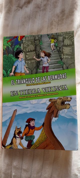 Dos libros en uno. EL TRIANGULO DE LAS BERMUDASPor fin han llegado las vacaciones! y vas a ir a Florida! Creías que iba a ser un viaje tranquilo, pero tu avión sufre un accidente al atravesar el famoso triángulo de las Bermudas. Desorientado, llegas a una isla que parece guardar más de un secreto. animales que creías extintos, tribus nativas, ruinas abandonadas... +Conseguirás desvelar el misterio que rodea la isla?EN TIERRA VIKINGAHas ganado un concurso, y el premio es... un viaje al Polo Norte! Ahora formas parte de una expedición científica y estás en un barco camino del Artico.