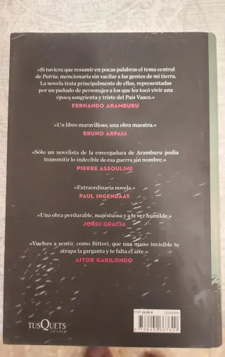 Se vende libro "Patria" de Fernando Aramburu