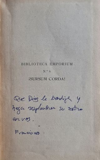 LIBRO SURSUM CORDA, CARTAS DE LA CONDESA DE SAINT MARTIAL EDICIÓN DEL AÑO 1909 FIRMADO POR EL PAPA FRANCISCO EN UNA RECEPCIÓN EN EL CONSULADO DE ESPAÑA EN EL VATICANO EN 2019 PRECIO NEGOCIABLE Certificado de autenticidad por pdf