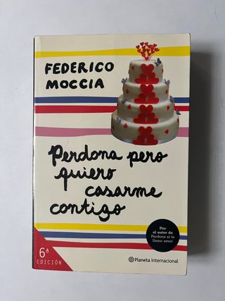 Titulo : Perdona pero quiero casarme contigo. Escritor : Federico Moccia. Formato : Tapa Blanda. Editorial : Planeta international. Estado : Como Nuevo. Precio : 0.85€ Se recoge en mano : -Madrid (a concretar día lugar y hora.)Por compras minimas. -Toledo unicamente en el Pueblo La Guardia. Hago envíos a través de Wallapop.