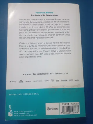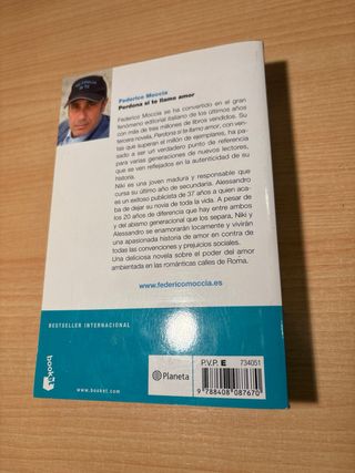 Perdona si te llamo amor - Federico Moccia (Edición Bolsillo) Niki es una joven madura y responsable que cursa su último año de secundaria. Alessandro es un exitoso publicista de treinta y siete años a quien acaba de dejar su novia de toda la vida. A pesar de los veinte años de diferencia que hay entre ambos y del abismo generacional que los separa, Niki y Alessandro se enamorarán locamente y vivirán una apasionada historia de amor en contra de todas las convenciones y prejuicios sociales. Nº Páginas: 688. Está en buen estado.