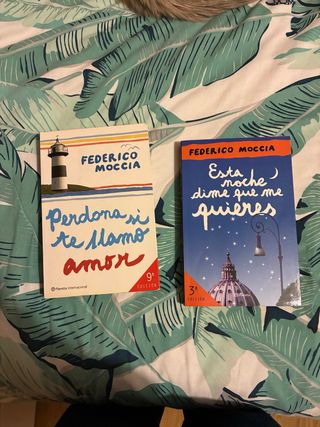 Coleccion de libros de Fedreico Moccia: -Perdona si te llamo amor -Perdona pero quiero casarme contigo -Carolina se enamora -Ese instante de felicidad -Tengo ganas de ti -Tres metros sobre el cielo -Tu simplemente tu
