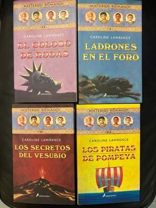El precio de cada libro es de 4E unidad. Autora Caroline Lawrence. Editorial Salamandra. Tapa blanda. Los cuatro libros son primera Edición. - Tomo 1. Ladrones en el Foro. - Tomo 2. Los secretos del Vesubio. - Tomo 3. Los Piratas de Pompeya. - Tomo 9. El Coloso de Rodas. VENDIDO Paginas 200 Aproxmte. Peso unitario 300 Gr./Unidad Aproxmte. REF-CASALO9