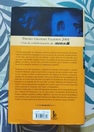 Tras los pasos de Drácula. Las dos caras del diablo. Fernando Martínez Laínez. *Primera edición, 2001. Ediciones B. Tapa dura con sobrecubierta. - Premio Grandes Viajeros 2001. "Crónica de viaje que explora la historia y las leyendas reales que rodean a la figura de Vlad III, el Empalador, el príncipe de Valaquia que inspiró el mito del vampiro. El autor recorre regiones de la actual Rumanía, como Valaquia y Transilvania, desentrañando la realidad histórica detrás del personaje literario."