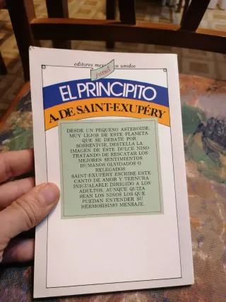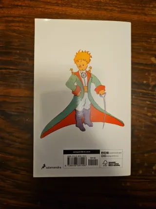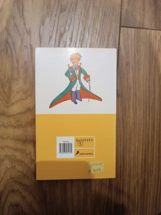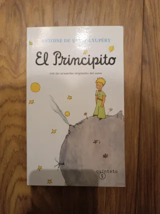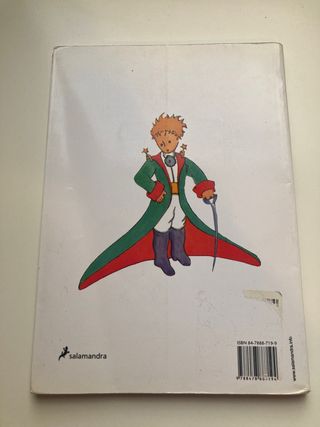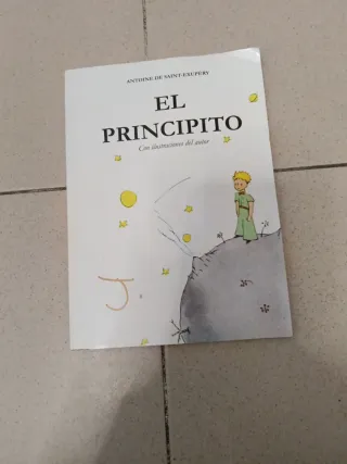 Vendo libro "El principito". Tiene mi nombre y la fecha de compra apuntado en bolígrafo en la primera página. Tiene algún desperfecto en la tapa trasera. Ver fotos. Entrega en Madrid o envío por Wallapop.