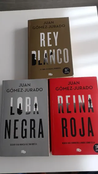 Se vende Trilogia: tres libros que componen la popular saga de thriller de Juan Gómez-Jurado, conocida como la trilogía de Antonia Scott o del Universo Reina Roja. Reina Roja: El primer libro de la saga y un superventas en España. Loba Negra: La continuación, donde la protagonista Antonia Scott se enfrenta a la mafia rusa en la Costa del Sol. Rey Blanco: El tercer y último libro de la trilogía principal. La saga se caracteriza por su ritmo vertiginoso, capítulos cortos y giros argumentales constantes