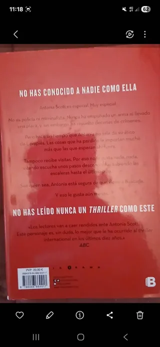 Primer libro de la famosa trilogía policiaca sobre Antonia Scott, de Juan Gómez-Jurado. Tiene una serie de televisión en Amazon Prime Video. Es la edición de tapa dura, pero le quité la cobertura de plástico porque así queda mucho más bonito y estético.
