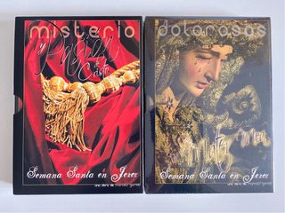 Pack de Dvds sobre la Semana Santa de Jerez. La colección esta formada por un volumen de 4 dvds con los pasos de cristo y otro volumen de 4 dvds con las dolorosas (nuevo, precintado).