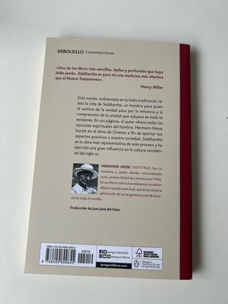 El libro es la novela filosófica Siddhartha de Hermann Hesse, publicada por Tusquets Editores y Plaza Janés, que narra la vida de un hombre en la India tradicional en su búsqueda de la verdad y la iluminación espiritual.