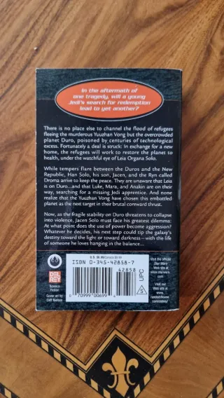 Star Wars – Legacy of the Force: Revelation (Karen Traviss) Edición en inglés. Novela perteneciente a la saga Legacy of the Force, ambientada décadas después de la trilogía original. La historia se centra en el conflicto galáctico provocado por Jacen Solo y las consecuencias que enfrenta la familia Skywalker. Tapa blanda (paperback) Idioma: inglés Parte clave del arco narrativo que profundiza en el lado oscuro, la caída de los héroes y la división dentro de la Nueva Alianza. Recomendada para lectores del Universo Expandido y fans del periodo posterior a El Retorno del Jedi. Envíos solo para pedidos mínimos de 10 €