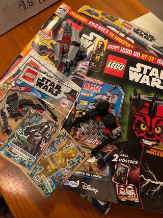 Paquete con dos revistas de LEGO Star Wars con figuras y cromos coleccionables