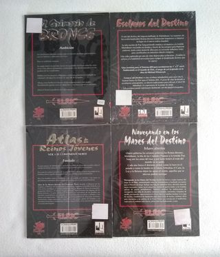 El Grimorio de Bronce 2 Esclavos del Destino 3 Atlas de los Reinos Jóvenes 4 Navegando en los Mares del Destino Nuevos y precintados. Hago envíos a toda España (Correos). Pago mediante transferencia bancaria. No uso Wallapop envíos. Etiquetas: El Señor de los Anillos El Hobbit Star Wars Star Trek La Llamada de Cthulhu Dungeons and Dragons Reinos Olvidados Dragonlance Eberron Pathfinder Vampiro Mascarada Hombre Lobo Mago Edad Oscura Mundo de Tinieblas Heroquest Cruzada Estelar Hero Quest Battle Masters Rol Caja Roja Amarilla Joc Dalmau Paranoia Cyberpunk Ravenloft Starfinder Elric Básico Warhammer Rolemaster Dark Sun Stormbringer