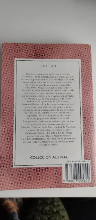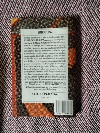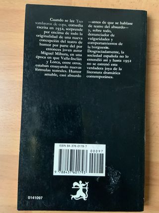 Vendo el libro “Tres Sombreros De Copa” de Miguel Mihura. Se puede enviar.