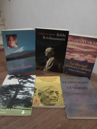 Lote de 6 libros de Jiddu Krishnamurti. -Limpia tu mente . -A los pies del maestro. -La obtención de la verdad . -Antologia comentada de su mensaje . -La libertad primera y última. -El coraje de estar solo . Todos por 20€ Más libros en mi perfil! narrativa,literatura ,contemporánea,clásicos ,Alianza,acantilado,cátedra,edhasa,planeta,Valdemar,minotauto,anagrama,alfaguara,salamandra,alba maior minus clásicos,Aguilar,bruguera,lumen, Tusquets editores,penguine Random House,asteroide,bolsillo,editorial impedimenta,saltó página,blackie books,periférica,Espasa, Áncora y Delfín,RBA,Seix Barral ,Maeva, Anaya