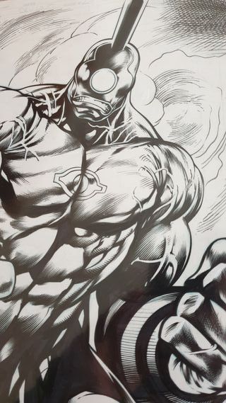 Arte original de comic de la Liga de la Justicia de America Generation Lost . Lapiz de Fernando Dagnino y tinta de Raúl Fenández Fonts. 22cm x 44cm. Lo vendo dentro de un toploader grueso de alta calidad, que protege al arte de doblarse, de deteriorarse por la luz, y libre de ácidos. Perfecta oportunidad para tener algo chulo en tu colección de cómics, para enmarcar en casa o apoyarlo en una repisa con el toploader. Primera espectacular aparición de OMAC PRIME! Ecc, panini, original art, integral, marvel gold, omnibus, omnigold, limited, dc, batman, justice league, wonder woman, super