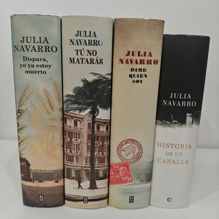 Lote compuesto de 4 libros de Julia Navarro. Dime quién soy Dispara que ya estoy muerto Tú no matarás Historia de un canalla Los tres primeros de la editorial Plaza Janes y el ultimo de Círculo de Lectores. En buen estado sin rallas ni firmas. No envíos, no negociable.