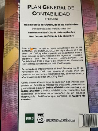 Plan general de contabilidad 3 esicion, contiene desplegable del cuadro de cuentas. Nunca de ha usado (uned)