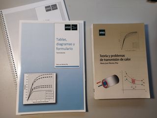 Vendo libro de teoría y problemas de transmisión de calor de la UNED, escribo por María José Montes Pita. Es el libro que se usa en termotecnia de ingeniería mecánica. También entrego las tablas que hay que llevar al examen y una copia de éstas para practicar en casa y poner alguna anotación si es necesario. El libro de texto está intacto, en las tablas originales tengo alguna marca de fosforito nada más, como; se ve en las fotos. Envío por wallapop.