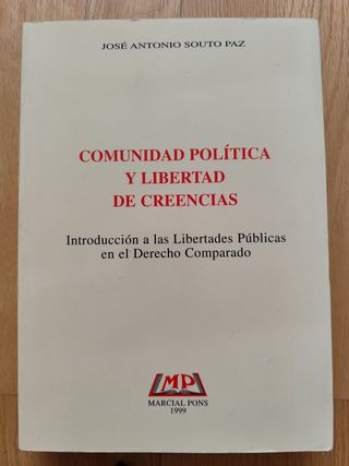 Comunidad Política y Libertad de Creencias. Marcial Pons. Derecho Matrimonial. Marcial Pons. Causas Matrimoniales. Tirant lo Blanch. Los manuales de Marcial Pons están impecables. Solo tienen algunas páginas con un leve subrayado a lápiz. El manual de casos y formularios de causas matrimoniales está nuevo. Precio por los tres manuales.
