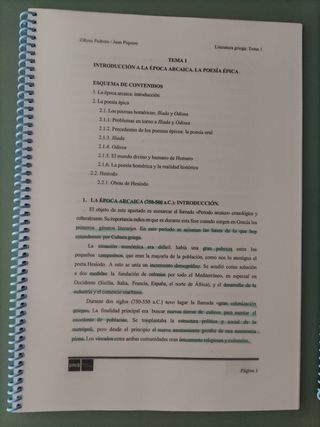 UNED Estudios Ingleses asignatura de segundo año. Temas de literatura griega y latina