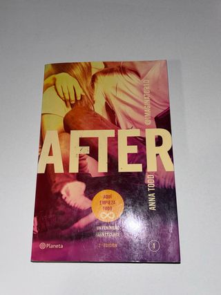 After I ( AQUÍ EMPIEZA TODO ) de Anna Todd. Sipnosis Tessa Young se enfrenta a su primer año en la universidad. Acostumbrada a una vida estable y ordenada, su mundo se tambalea cuando conoce a Hardin, un chico tan guapo como cruel, inquietante, lleno de tatuajes, y de aparente mala vida. Desde el primer momento se odian.Pertenecen a dos mundos distintos, pero pronto se harán más que amigos y nada volverá a ser igual. Hardin y Tessa deberán enfrentar muchas pruebas para estar juntos. La inocencia, el despertar a la vida, el descubrimiento del sexo… las huellas de un amor tan poderoso como la fuerza del destino..
