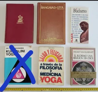 EL BHAGAVAD-GITA TAL COMO ES. SU DIVINA GRACIA. A. C. BHAKTIVEDANTA SWAMI PRABHUPÃDA. THE BHAKTIVEDANTA BOOK TRUST. KULIANA SCEVOLA: SALUD Y FELICIDAD A TRAVÉS DE LA FILOSOFÍA Y MEDICINA YOGA. EDITORIAL DE VECCHI. BARCELONA. LAS FOTOS SIRVEN COMO DESCRIPCIÓN DEL PRODUCTO M. J. KIRSCHNER: YOGA. COLECCIÓN HERAKLES. EDITORIAL HISPANO EUROPEA. BARCELONA. HELMUT VON GLASENAPP: EL BUDISMO UNA RELIGIÓN SIN DIOS. ED. BARRAL. TAPA CON SOLAPA Y PROTECTOR DE ORIGEN. EL BUDISMO. FLASH. ACENTO EDITORIAL. MADRID CONSULTA SE PUEDE DIVIDIR EL LOTE