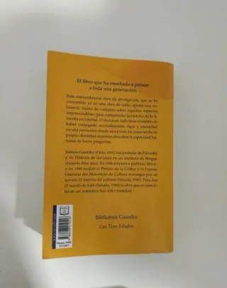 Libro de filosofía, el mundo de Sofía. De Jostein Gaarder. Tiene una pequeña mancha que no traspasa a las hojas.