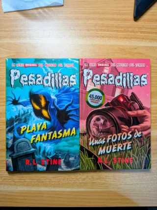 Vendo pareja de libros de la colección Pesadillas de R.L. Stine (Editorial Hidra). Títulos llenos de misterio y apariciones. Títulos incluidos en este pack: Unas fotos de muerte: La famosa historia de la cámara maldita. Playa fantasma: Un misterio clásico de verano. Ambos en muy buen estado, sin marcas ni dobleces. Nota: Vendo el pack completo, pero también acepto ofertas por libros sueltos o lotes combinados con el resto de libros de Pesadillas que tengo en venta.