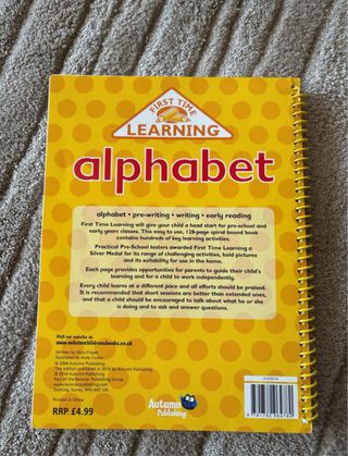 Primer libro de aprendizaje del alfabeto para 3-5 años First alphabet learning book for 3-5 years Sólo están usadas las dos primeras hojas
