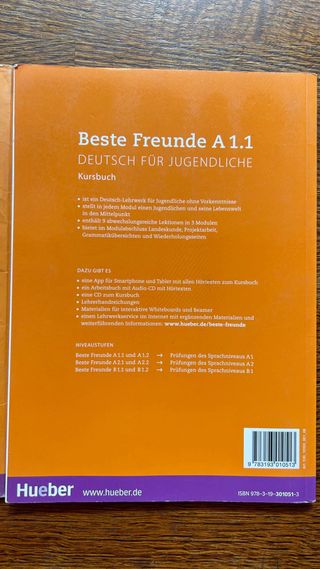 Libro de texto de alemán para jóvenes. - Nivel A1.1. - Beste Freunde Kursbuch. - Editorial Hueber.