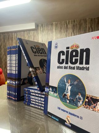 Conjunto de 16 libros de tapa dura que narran la historia del Real Madrid, incluye imágenes y una buena pieza para coleccionar