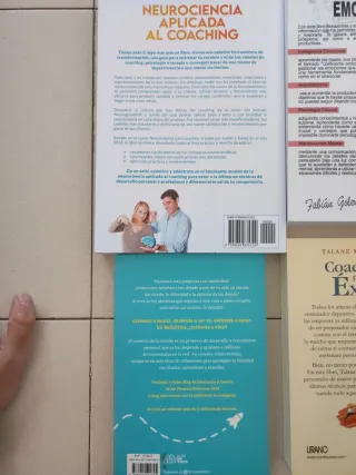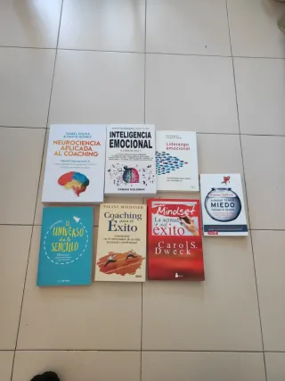 7 libros 45 euros La actitud del éxito Carol dweck 7 euros El universo de lo sencillo Pablo Arribas 5 euros Liderazgo emocional Cary cherniss 10 euros Inteligencia emocional Fabian goleman 4 libros en 12 euros Aunque tenga miedo hagalo igual Susan Jeffers ( SUBRAYADO ) 5 euros coaching para el exito Talane Mideaner ( SUBRAYADO ) 3 euros neurociencia aplicada al coaching Isabel Sousa David Gomez ( SUBRAYADO ) 10 euros