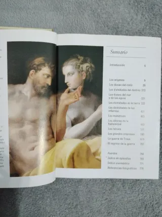 Esta pequeña pero robusta enciclopedia de tapa dura y cuyo color imita al dorado y hace una lista de divinidades y héroes grecorromanos junto con una breve descripción e historia. Aunque robusta, no tiene mucho texto y da prioridad a las imágenes. En la página izquierda tenéis un pequeño texto y en la derecha una imagen de una escena mitológica, una estatua o una imagen del Dios o del héroe. Es muy completa y sirve como consulta así como lectura por placer para quien esté interesado en este tema.