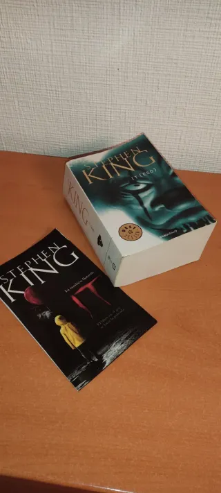 Novela "It" de Stephen King. El libro en el que se inspiró la película "It". Está un poco dañado por una de las esquinas pero las páginas están perfectamente. Sinopsis: "¿Quién o qué mutila y mata a los niños de un pequeño pueblo norteamericano? ¿Por qué llega ciclicamente el horror a Derry en forma de un payaso siniestro que va sembrando la destrucción a su paso? Esto es lo que se proponen averiguar los protagonistas de esta novela..."