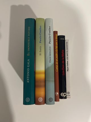 Paulo Coelho El Zahir y Once minutos Antonio Gala El imposible olvido Miguel Delibes Los Santos Inocentes Luciano Doddoli Cartas de un padre a la hija que se droga George William Rae Los don de la Mafia Los seis por 5€.