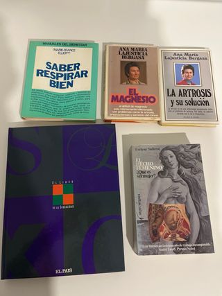 Lote cinco libros sobre salud: El País El libro de la sexualidad Evelyne Sullerot El hecho femenino Marie France Elliot Saber respirar bien Ana María Lajusticia El Magnesio Ana Maria Lajusticia La artrosis y su solución Los cinco por 5€.