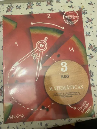 Tres libros de matemáticas de 3° ESO correspondencia a cada trimestre portada de sandia incluye proyecto digital, nuevo tan solo usado una vez.