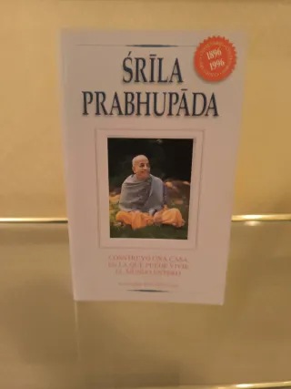 Libro sobre Srila Prabhupada, conmemorando su centenario. - Título: Construyó una casa en la que puede vivir el mundo entero. - Incluye imagen central del autor. - Edición especial 1896-1996.