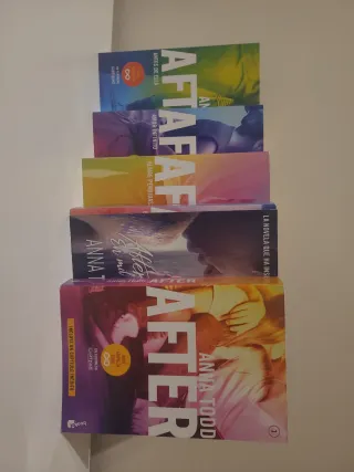 Colección completa de AFTER (5 libros) de Anna Todd. 📕 Libro 1: nuevo, en perfecto estado. 📕 Libro 2: leído solo una vez, en buen estado, con cinta promocional de la película. 📕 Libro 3: nuevo; llegó con un pequeño corte en la portada ya reparado, interior impecable. 📕 Libro 4: nuevo, perfecto estado. 📕 Libro 5: nuevo, perfecto estado. Libros siempre guardados en estantería. Se vende el pack completo. Cualquier duda o para solicitar más fotos: por mensaje.