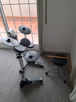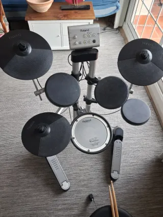 Batería electrónica Roland HD-1. Hay que ajustar el pedal del bombo y sustituir la goma del pedal de hi-hat (incluyo recambio original) Incluyo taburete y baquetas.
