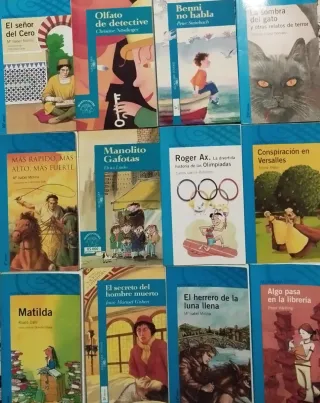 Lote de doce libros Alfaguara serie azul a partir de doce años precio por los doce libros encuadernación hojas y este y cubierta en estado correcto con signos diferentes de uso J1 Beni no habla la sombra del gato Olfato de detective conspiración en Versalles el señor cero Manolito gafotas algo pasa en la librería Roger Axe Matilda más rápido más alto más fuerte el herrero de la luna llena el secreto del hombre muerto