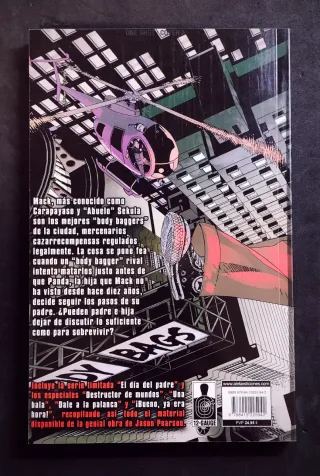 Mack, más conocido como Clownface y Pops Sekula son los mejores “body baggers” de la ciudad, mercenarios cazarrecompensas regulados legalmente. La cosa se pone fea cuando un “body bagger” rival intenta matarlos justo antes de que Panda, la hija que Mack no ha visto desde hace diez años, decide seguir los pasos de su padre. ¿Pueden padre e hija dejar de discutir lo suficiente como para sobrevivir? Presentamos la controvertida serie del genial Jason Pearson recopilada en un solo tomo que incluye todas las historias de Body Bags publicadas hasta la fecha, tanto la serie original como los números únicos e historias cortas.