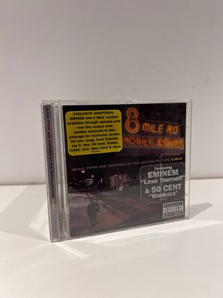 Banda sonora original de la película 8 Mile, con música de Eminem y otros artistas. Señales de uso normales en carcasa paso del tiempo - Incluye canciones exclusivas de Eminem, Jay Z, Nas, 50 Cent, Rakim, Xzibit, D12, Obie Trice y más. - Contiene el éxito Lose Yourself de Eminem y Wanksta de 50 Cent. - Incluye código para contenido adicional en eminem.com.