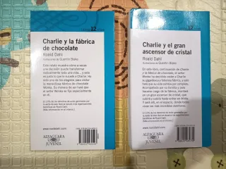 Libro en buen estado de Charlie y la Fabrica de chocolate y de regalo Charlie y el gran ascensor de cristal, éste tiene algunas marcas de estar guardado, por eso va de regalo.