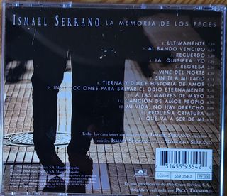 CD del año 1998. Cd del álbum La memoria de los peces de Ismael Serrano. Incluye el CD original. Ideal para coleccionistas de música española. E S
